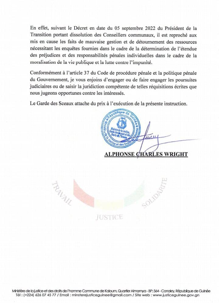 Dans une lettre, le ministre de la Justice, Alphonse Charles Wright, a ordonné au procureur près la cour d’appel de poursuivre pour des faits présumés de détournement de deniers publics et complicité, le directeur général de la Caisse nationale de sécurité sociale, Bakary Sylla et Assimiou Sall, ancien agent comptable de l’institution.