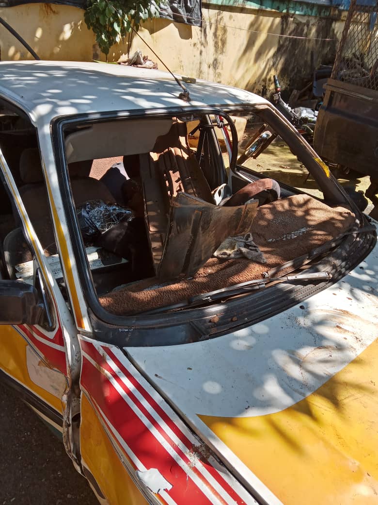 Notre source indique que : « la dame et le chauffeur de taxi quittaient Enco 5 et se dirigeaient vers Cosa. La dame a reproché au chauffeur de taxi une mauvaise conduite à son égard. La dame a interpellé le chauffeur qui n’a pas voulu l’écouter et qui l’aurait fait un doigt d’honneur. Ce qui n’a été du goût de la dame qui a fini par garer son véhicule et poursuivre le chauffeur en criant (mougnati) sur un taxi moto qu’elle a emprunté. C’est ainsi que plusieurs conducteurs de taxi moto se sont mis à poursuivre du chauffeur de taxi. Arrivé au niveau du carrefour Métal Guinée, le chauffeur de taxi est descendu de son véhicule pour sauver sa vie. Son véhicule a été saccagé par les conducteurs de taxi moto qui le prenaient pour un voleur », a expliqué notre source.