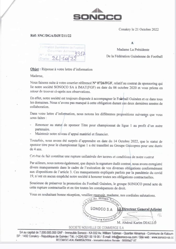 Rien ne va plus entre le groupe Sonoco et la Fédération guinéenne