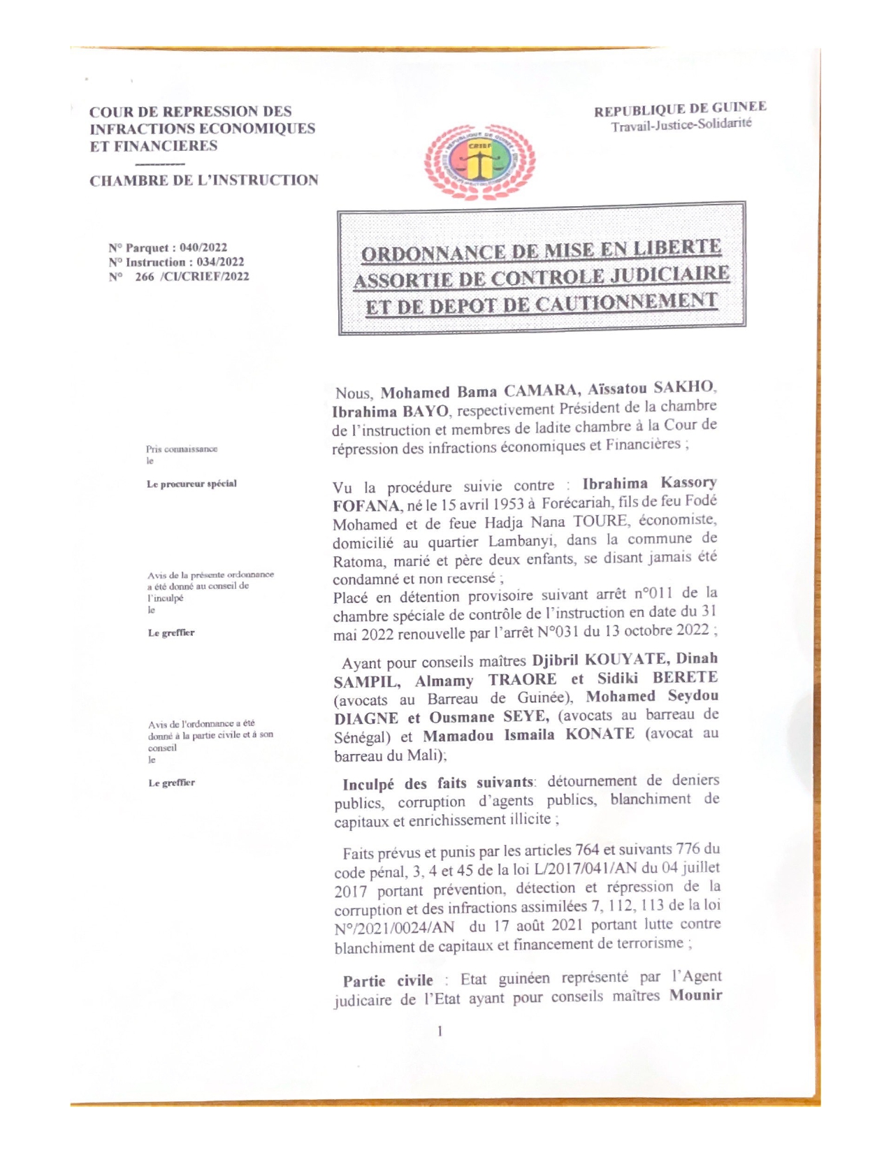L’article CRIEF : la chambre de l’instruction ordonne la libération sous contrôle judiciaire, avec caution de Kassory est apparu en premier sur Mediaguinee.org.