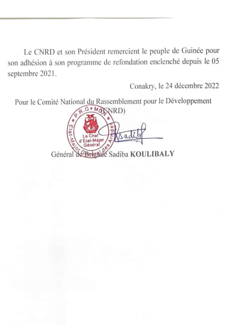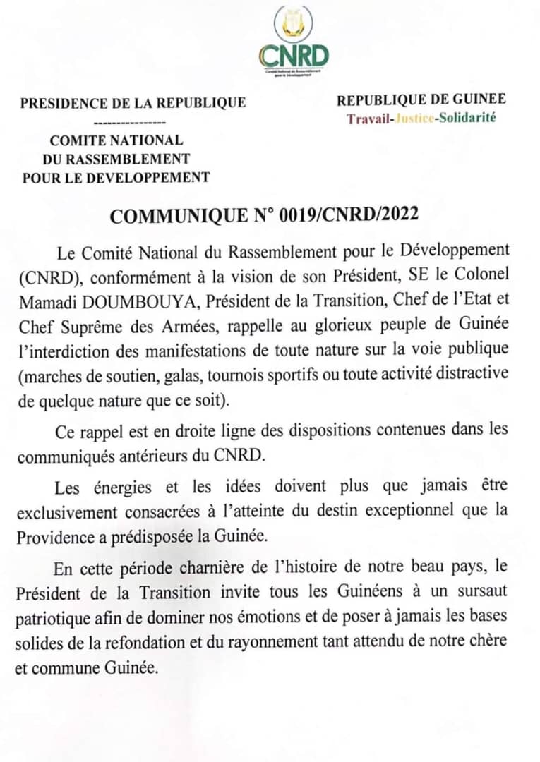 Il y a plusieurs mois que le comité national pour le redressement national (CNRD) a pris un acte pour interdire les manifestations de toute nature sur la voie publique. Si cette injonction est respectée à la lettre par les partis politiques par exemple, ce n’était pas le cas de certains groupes d’individus acquis à la cause de l’organe de gestion de la transition. A tel point que ce dernier a été obligé de publier tard ce samedi 24 décembre, un communiqué de rappel, qui invite les citoyens au strict respect des interdictions inclues dans les premiers communiqués.