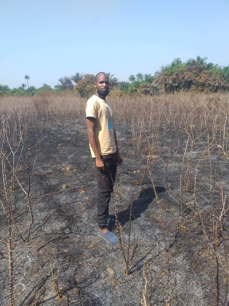 « Rien n’est resté, le feu a tout ravagé, donc, je ne peux rien faire d’autre. Parce que, si tu essaies de porter plainte ou de contacter les autorités ils te demandent de l’argent encore. Donc, voilà ce qui est là tu as perdu de l’argent on te demande encore de l’argent. Donc, j’étais obligé d’appeler les membres de mon équipe, leur expliquer comment cela s’est passé… Ils ont dit allons voir encore ce qui s’est passé et s’il y a quelque chose à faire pour récupérer un peu. On est parti on a vu l’état des maniocs c’était vraiment déplorable, on ne pouvait rien faire d’autre. On a demandé à la communauté ce qu’on pouvait faire ? Est-ce qu’il y a une autre solution pour récupérer quelques-uns ils m’ont dit qu’ils n’ont aucune solution « , a-t-il expliqué.