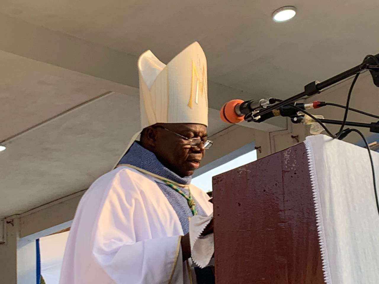 « Par ailleurs, comme cette année le pèlerinage de Boffa rassemble les chrétiens et chrétiennes des trois(3) diocèses de notre pays, la Guinée et même quelques fidèles chrétiens de la sous-région et d’ailleurs. Cela est une grâce pour nous. De nous réunir dans la paix et la joie au pied de Marie notre mère pour lui présenter nos préoccupations, de notre pays et de chacun de nous sur le plan politique, social et religieux. Ainsi, nous prions pour les différentes autorités de notre pays surtout celles politiques, administratives et gouvernementales pour que le Seigneur leur accorde la grâce, l’intelligence et la sagesse de mener à bien la transition afin de rétablir la démocratie et la paix. »