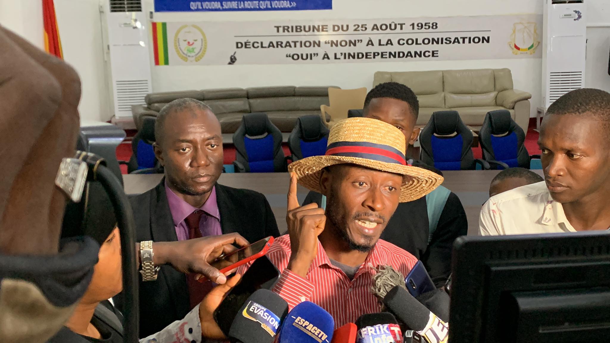 Après le dépôt du courrier, le secrétaire général du syndicat de la presse professionnelle de Guinée (SPPG), Sékou Jamal Pendessa a déclaré ceci: « il a été question à la mairie de Kaloum de déposer le courrier d’information relatif à la marche du 1er juin prochain. Vous savez, on a connu beaucoup d’actes liberticides ces derniers temps, donc il était question pour la presse guinéenne sous la conduite du SPPG de réserver une réplique appropriée, notamment à la sortie provocatrice du porte-parole du gouvernement. Donc il y a eu beaucoup d’actions mais l’arme fatale qu’on avait c’est cette marche qu’on a placée sous le signe du » 5ème résistant » . Aujourd’hui c’était une question de formalité, nous avons déposé le courrier, nous avons la décharge avec nous ».