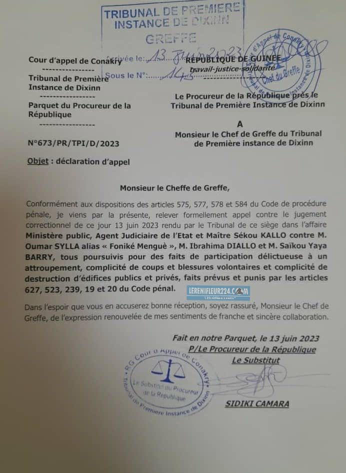 Des responsables du FNDC (Foniké Menguè et Ibrahima Diallo) et Saikou Yaya Barry de l’UFR ne se sont pas encore tirés d’affaire, moins de 24 heures après leur acquittement par le tribunal de première instance de Dixinn. Le procureur de la République vient de relever appel