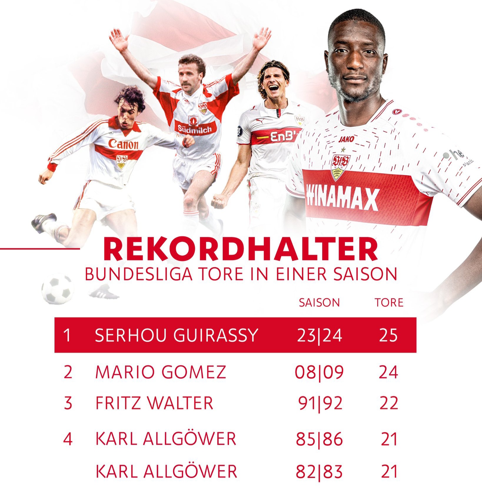 En marquant contre Francfort ce samedi en championnat allemand, son 25ème but de la saison en 23 matchs, Serhou Guirassy vient de passer devant au classement des meilleurs buteurs de l’histoire du club en Bundesliga Allemande. Il est seul désormais à occuper la première place devant un certain Mario Gomez et ses 24 buts lors de la saison 2008-2009. Et Guirassy n’est pas prêt de s’arrêter à mi-chemin.