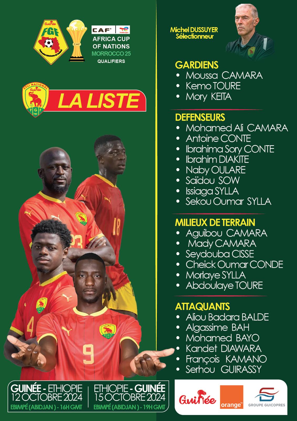 CONAKRY- Sur cette première liste publiée par le nouveau sélectionneur du Syli National Michel Dussuyer, on note le grand retour de Serhou Guirassy. L’attaquant guineen était absent lors de l’entame des éliminatoires de la CAN 2025, pour cause de blessure. Mady Camara est aussi là, tout comme Morlaye Sylla et Aguibou Camara.