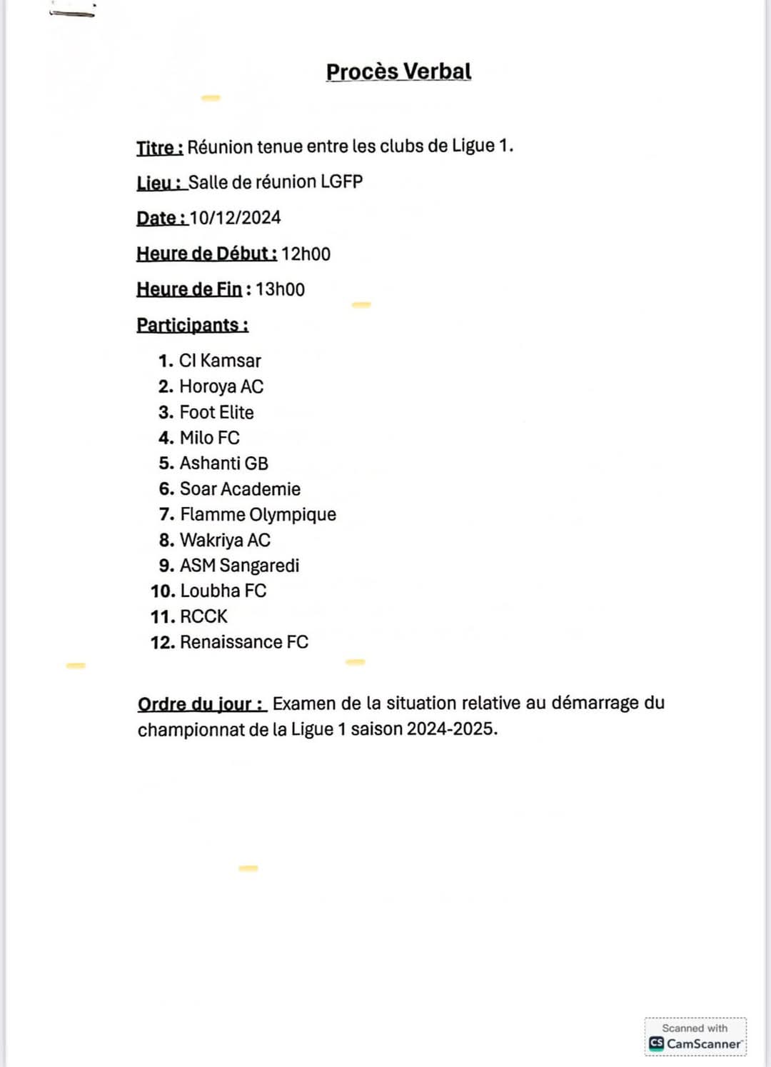 VOICI LE COURIER DE CES 12 CLUBS