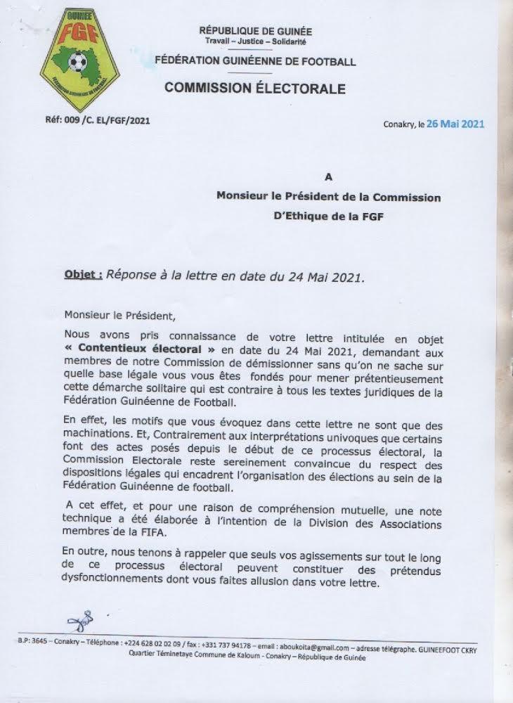 Voici le courrier réponse de la commission électorale