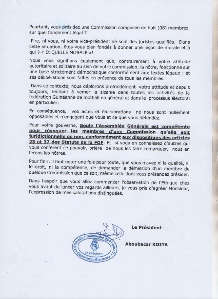 “Vous n’avez ni la qualité, ni le droit, ni la compétence de demander la démission d’un membre de quelque commission que ce soit, même celle dont vous prétendez présider “ réplique la commission électorale.